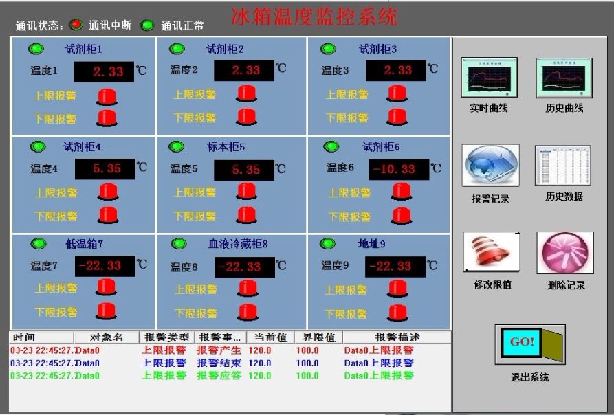 通过监测系统,对监测区域内的每个监测对象(冰箱)进行实时监测与管理,当有超过安全范围的温度情况发生,系统通过现场声光报警、远程短信报警等多种方式*时间向相关人员发送报警,以达到*时间发现问题并及时解决问题,将出现问题所产生的影响减小到***小,将风险消灭在萌芽状态。