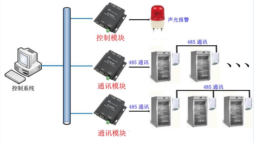 通过温度的自动测控技术和数据通讯技术实现对冰箱的温度进行的24小时不间断的检测、报警、记录和数据存储、查询;